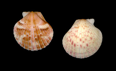 Aequipecten commutatus (Monterosato, 1875) Trawled between 50 to 80 meters deep on muddy sand bottom; Off Malaga, Spain, Alboran Sea; June 2016