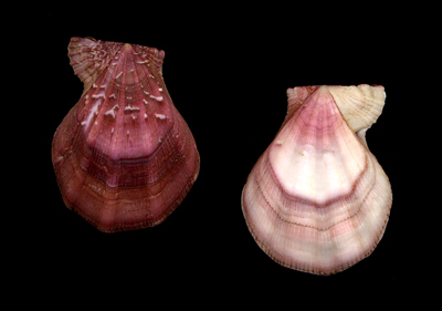 Swiftopecten swiftii (Bernardi. 1858) Trawled by fishermen between 50 to 80 meters depth on sandy gravel bottom; North Korea, Sea of Japan; February 2013