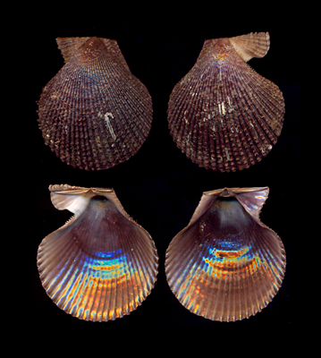 Mimachlamys varia (Linnaeus, 1758) Collected at 8 meters depth on rocky bottom; Cagliari Gulf, Sardinia, Italy; 1990