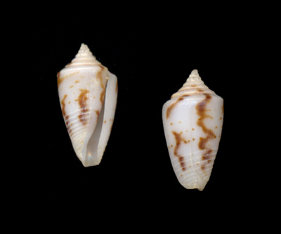 Conasprella (Ximeniconus) wendrosi (Tenorio & Afonso, 2013) Collected while snorkeling 1 meter deep on sandy bottom; Malmok, Aruba, Caribbean Sea; February 2015