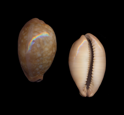 Callistocypraea nivosa (Broderip, 1827) Trawled by local fishermen between 75 to 100 meters depth; Off Nagapattinam, Tamil Nadu, India; June 2011 |
