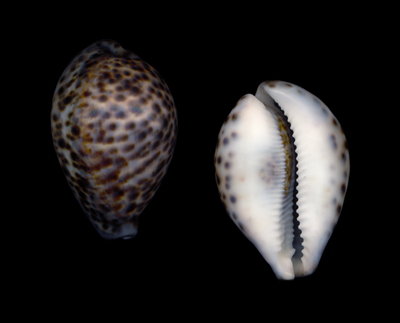 Cypraea tigris Linnaeus, 1758 Netted by fishermen between 20 to 25 meters depth; Off Thoothukudi, Tamil Nadu, India; December 2012